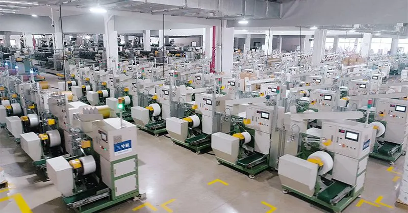 To use the large space more efficiently, we have developed the increasing amount of fully automatic production lines to manufacture straps. Automatic production lines equipped with the advanced technology precisely control the parameters of straps and automatic winding machines efficiently produce standard coil straps (20kg) and super jumbo coil straps (350kg). Our next target aims at producing strap coils that weigh 2,000 kg. Automatic production lines and skillful staff help Changcheng maximize the output while reducing unnecessary man power.